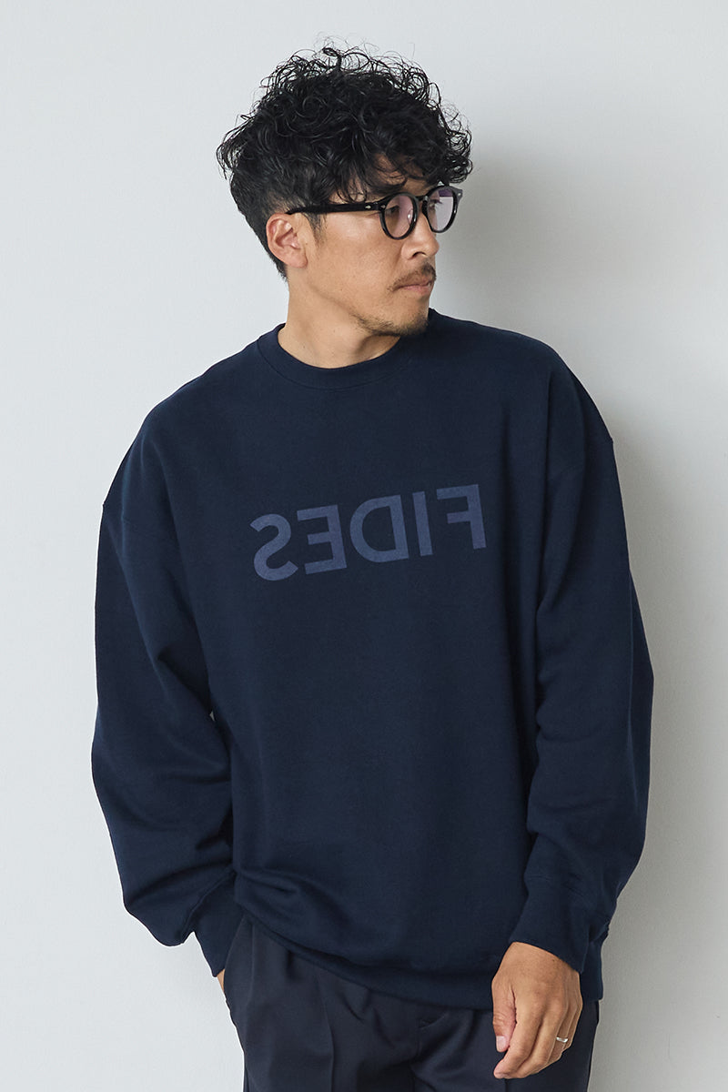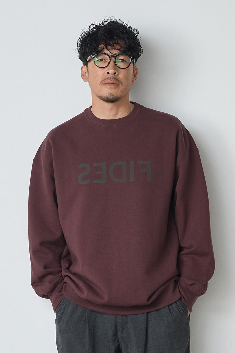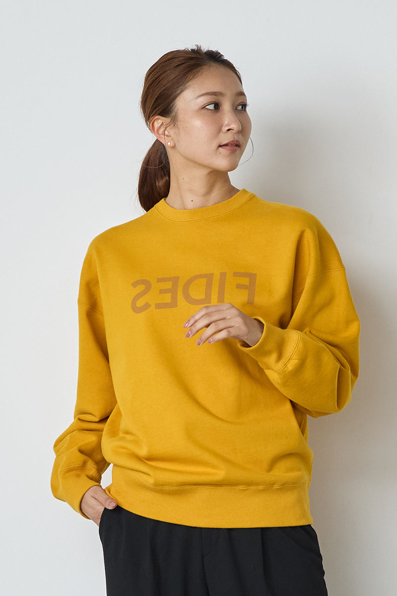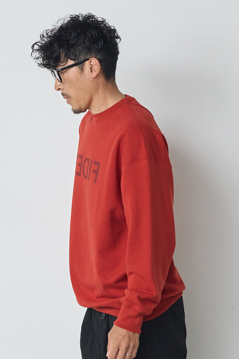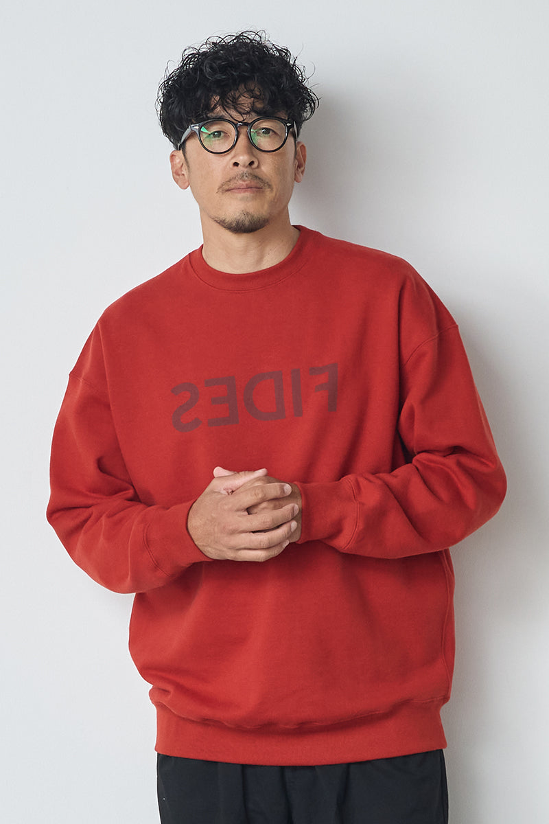 しっかりと度目を詰めたハリ感のあるヘビーウェイト生地を使用したクルーネックスウェット。耐久性があって、型崩れしにくく、タフな着応えが味わえます。裏面はさらっとした裏毛仕様で肌離れが良く、快適な着心地です。フロントにはロゴをあえて反転させたプリントを施し、さりげない違和感と遊び心をプラス。カラーはイエロー・レッド・グリーン・バーガンディ・ネイビーの5色展開。スタイリングの主役となるアクセントカラーからデイリーに使いやすいカラーまで揃えました。子供服と合わせてのコーディネートもおすすめです。