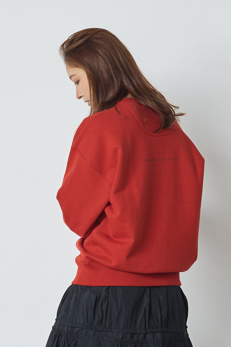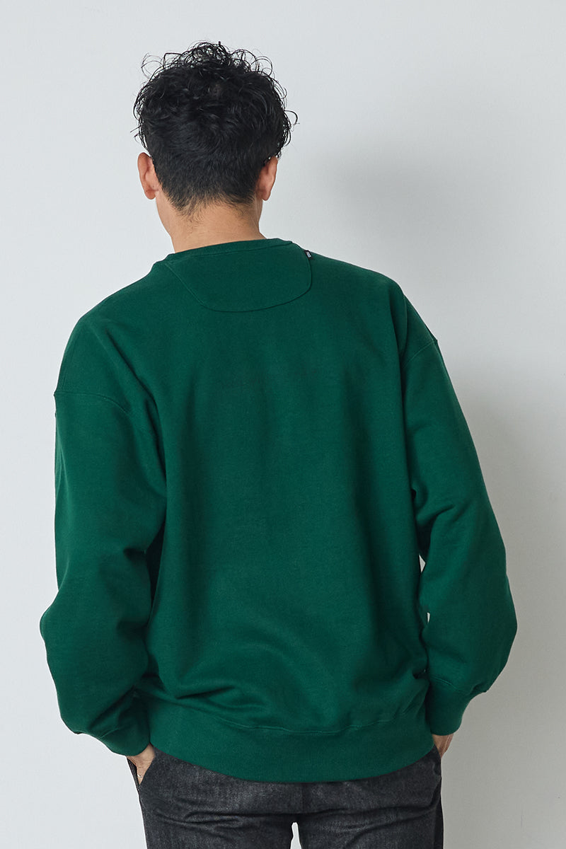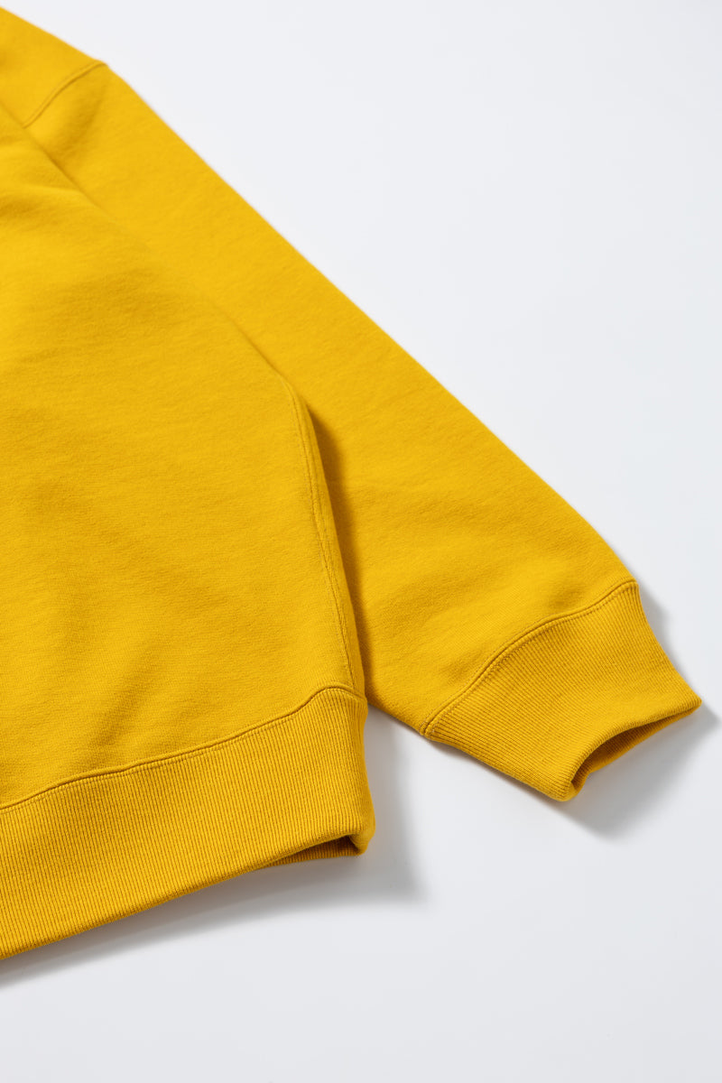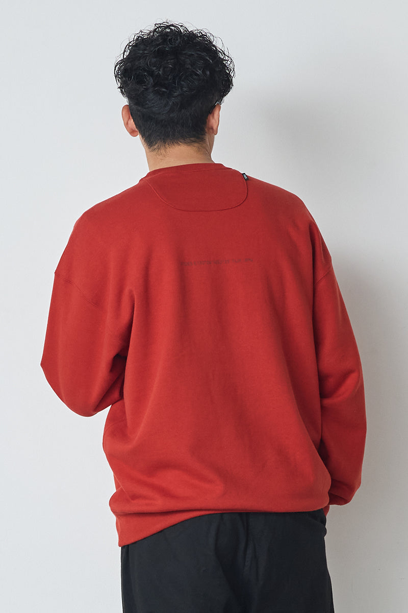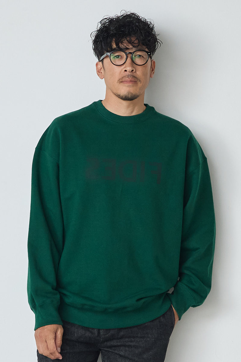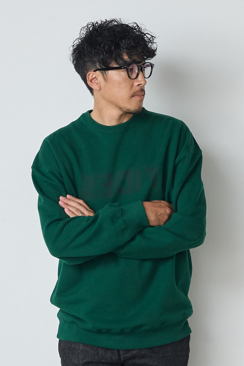 しっかりと度目を詰めたハリ感のあるヘビーウェイト生地を使用したクルーネックスウェット。耐久性があって、型崩れしにくく、タフな着応えが味わえます。裏面はさらっとした裏毛仕様で肌離れが良く、快適な着心地です。フロントにはロゴをあえて反転させたプリントを施し、さりげない違和感と遊び心をプラス。カラーはイエロー・レッド・グリーン・バーガンディ・ネイビーの5色展開。スタイリングの主役となるアクセントカラーからデイリーに使いやすいカラーまで揃えました。子供服と合わせてのコーディネートもおすすめです。