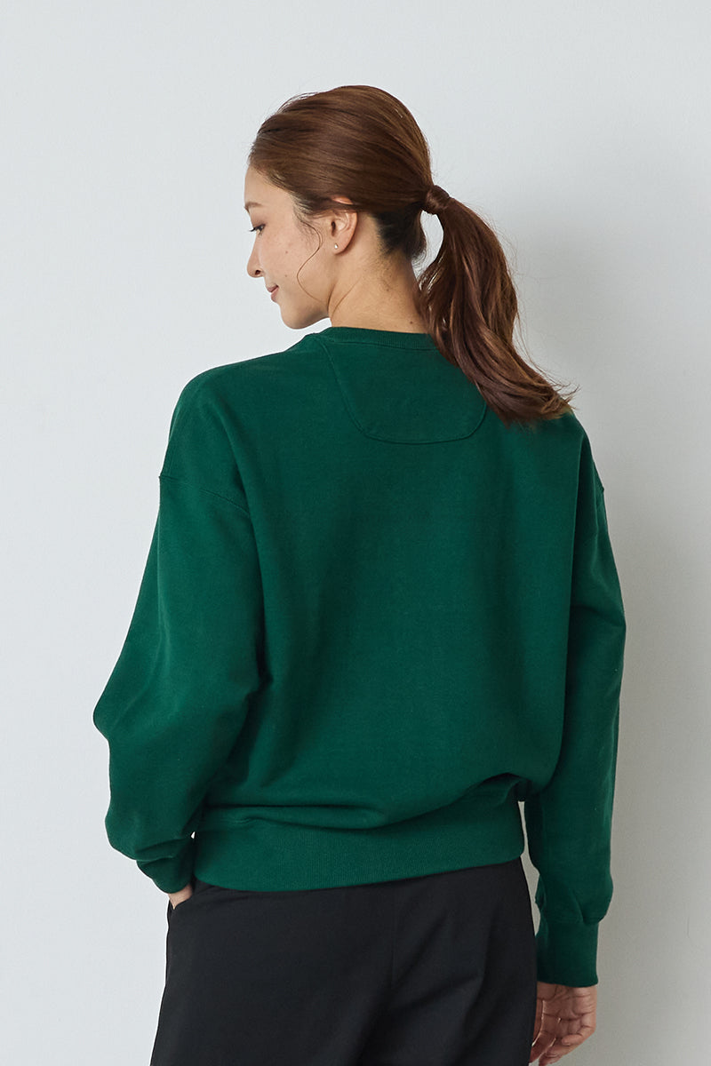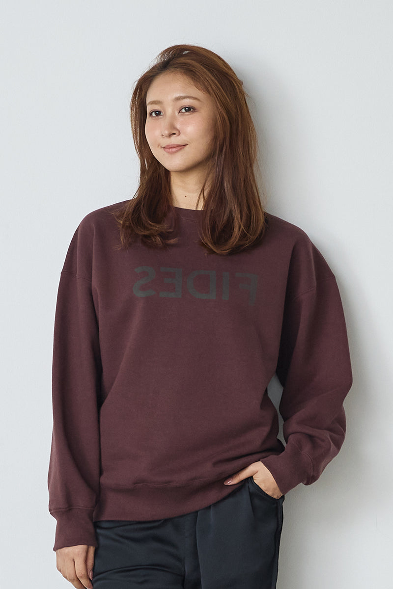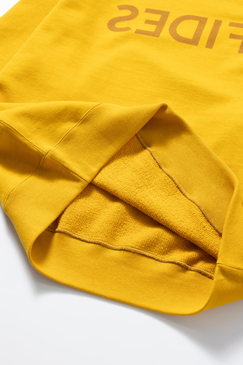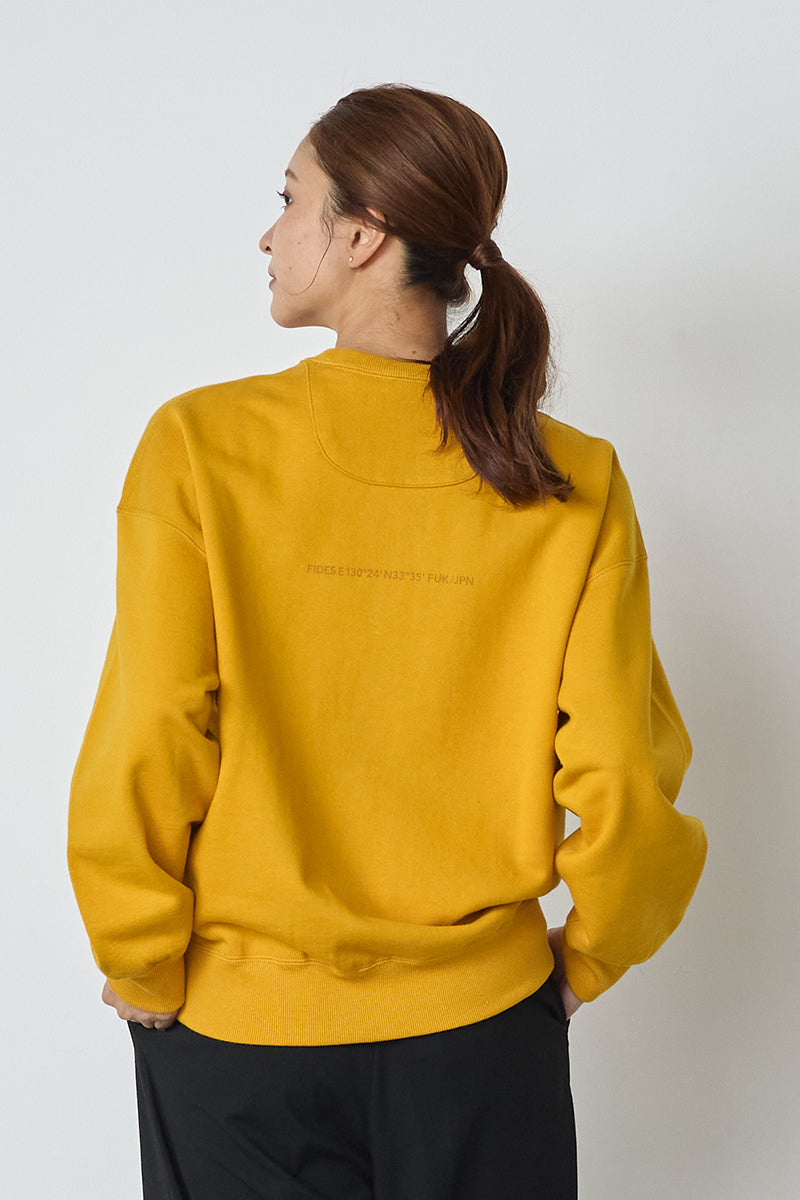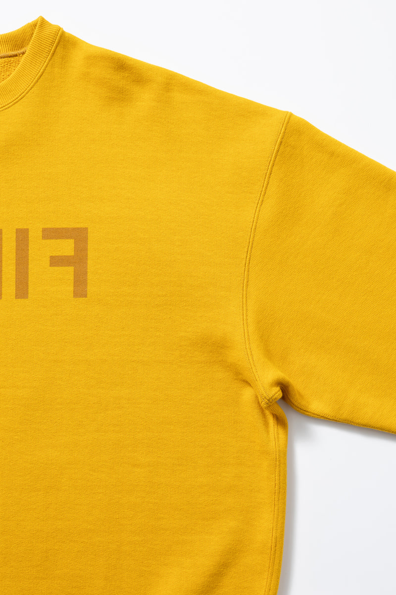 しっかりと度目を詰めたハリ感のあるヘビーウェイト生地を使用したクルーネックスウェット。耐久性があって、型崩れしにくく、タフな着応えが味わえます。裏面はさらっとした裏毛仕様で肌離れが良く、快適な着心地です。フロントにはロゴをあえて反転させたプリントを施し、さりげない違和感と遊び心をプラス。カラーはイエロー・レッド・グリーン・バーガンディ・ネイビーの5色展開。スタイリングの主役となるアクセントカラーからデイリーに使いやすいカラーまで揃えました。子供服と合わせてのコーディネートもおすすめです。