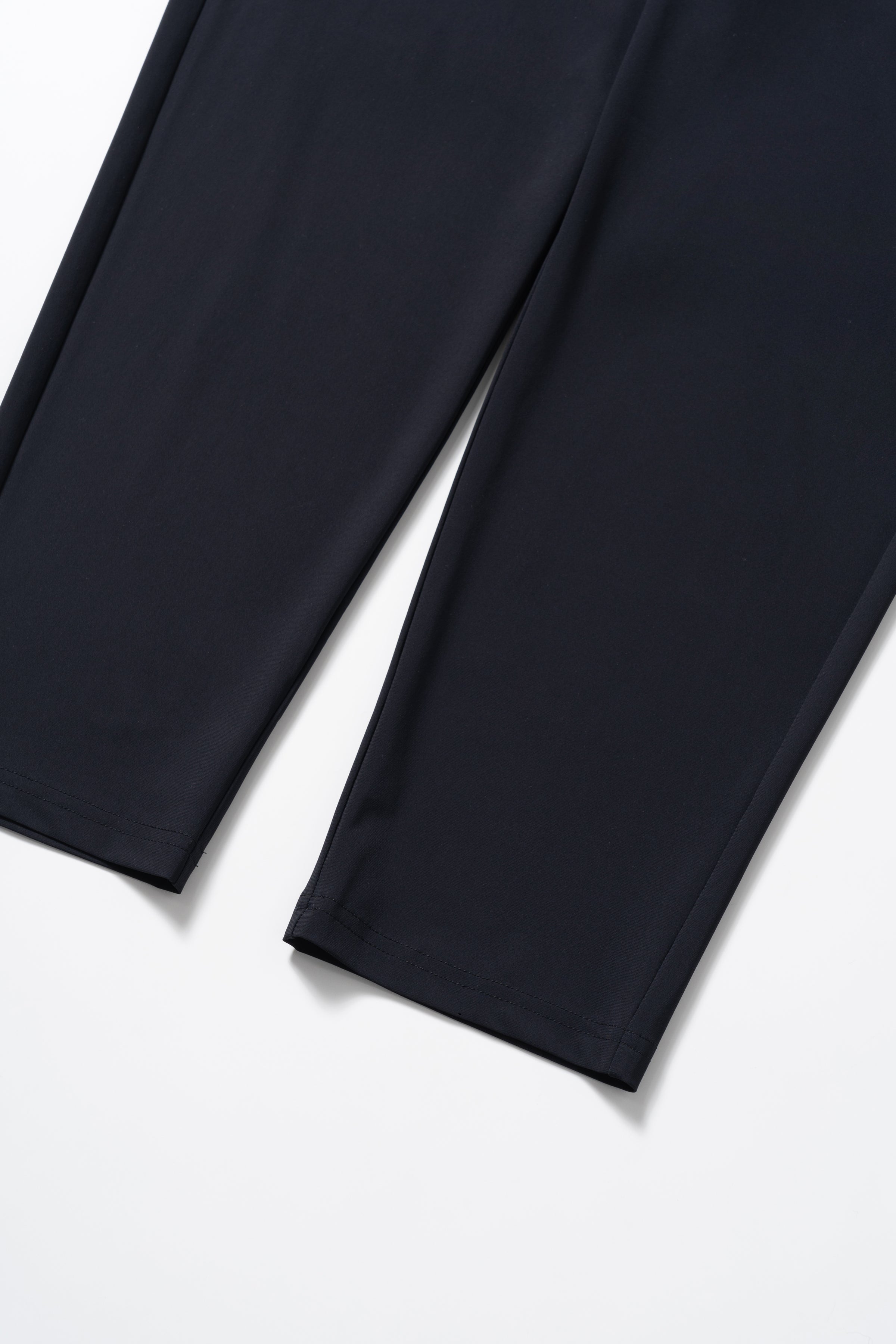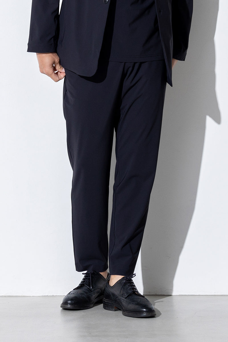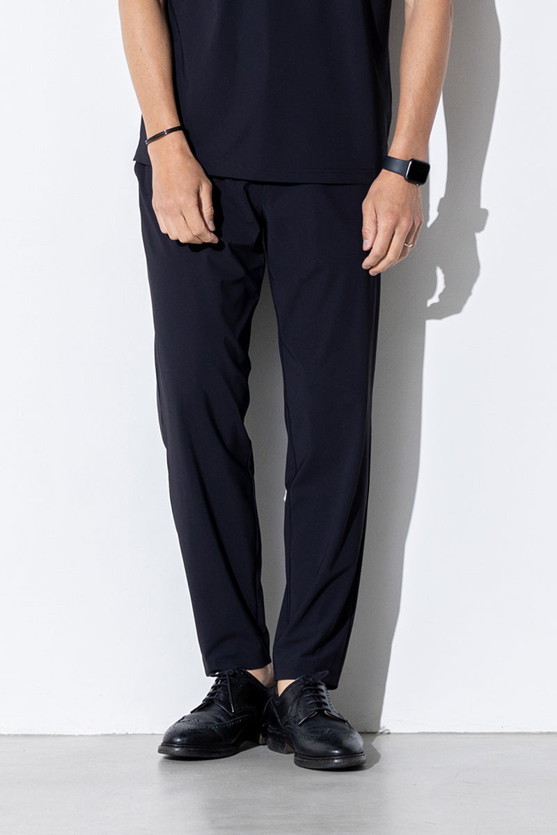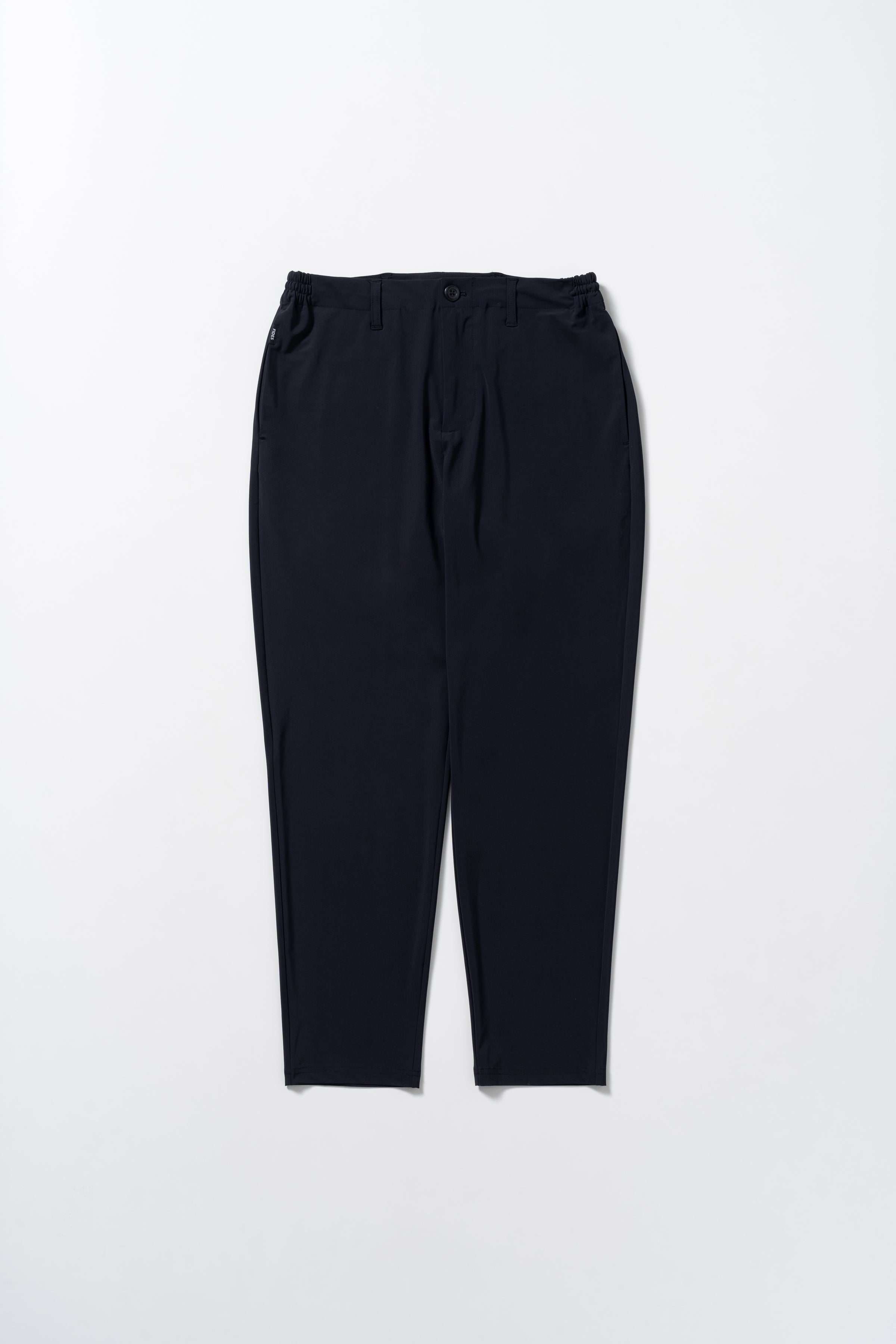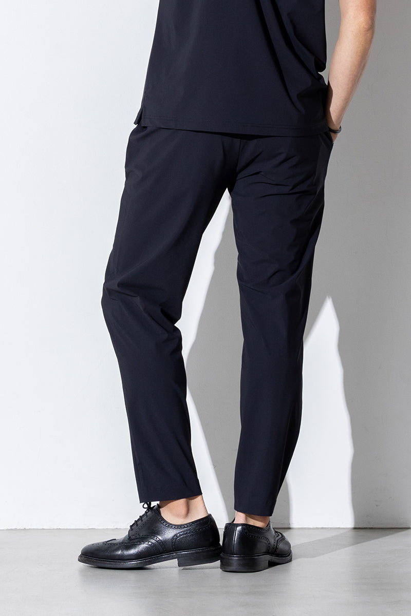 4WAYストレッチで快適な履き心地のストレッチテーパードパンツ。ウエストは紐をつけているため調整が可能。ベルトループも備えており、普段使いだけでなくビジネスシーンにも重宝するアイテム。同素材のジャケットやポロシャツとセットアップでコーディネートするのもおすすめ。リサイクルポリエステルやリサイクルボタンを使用しています。