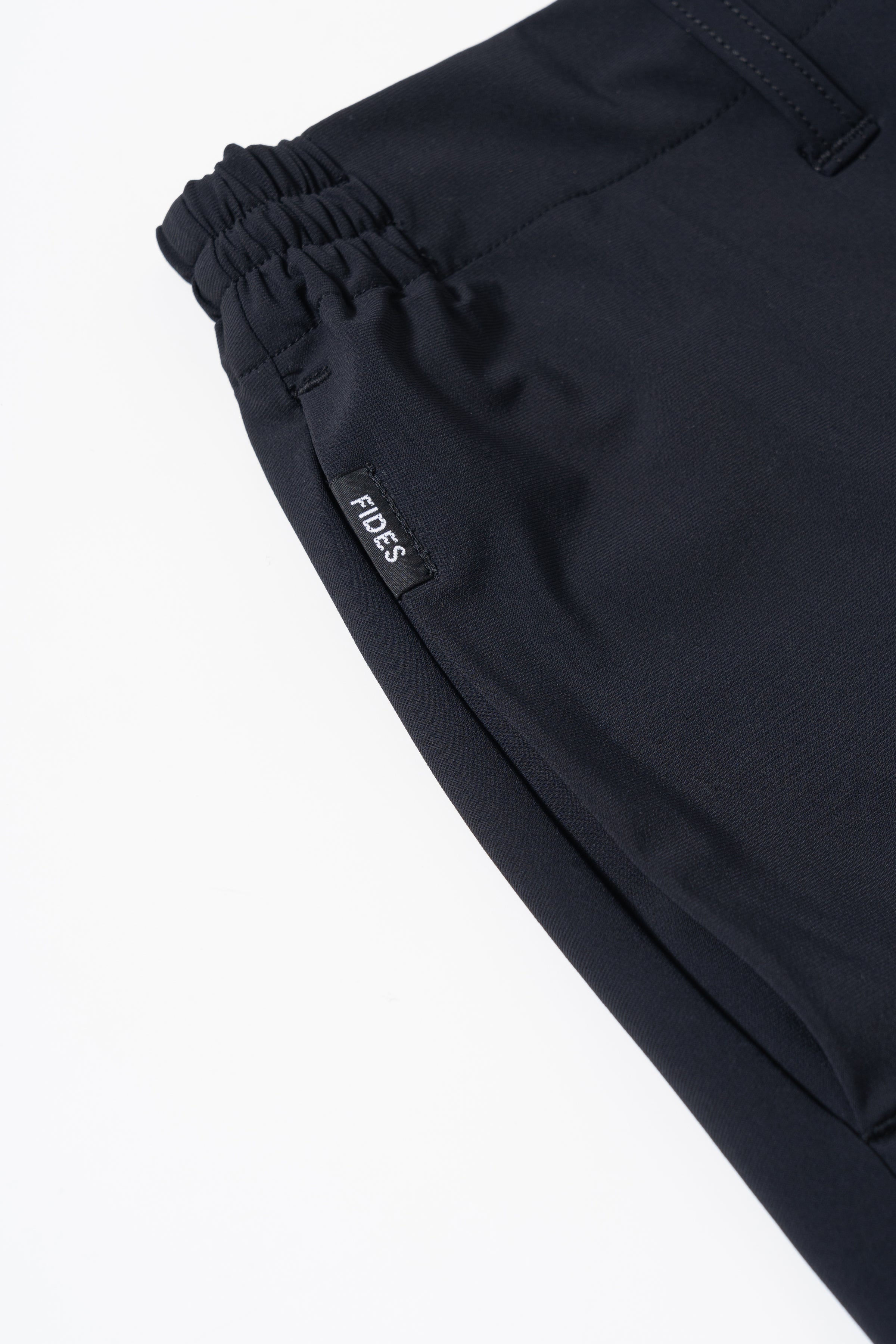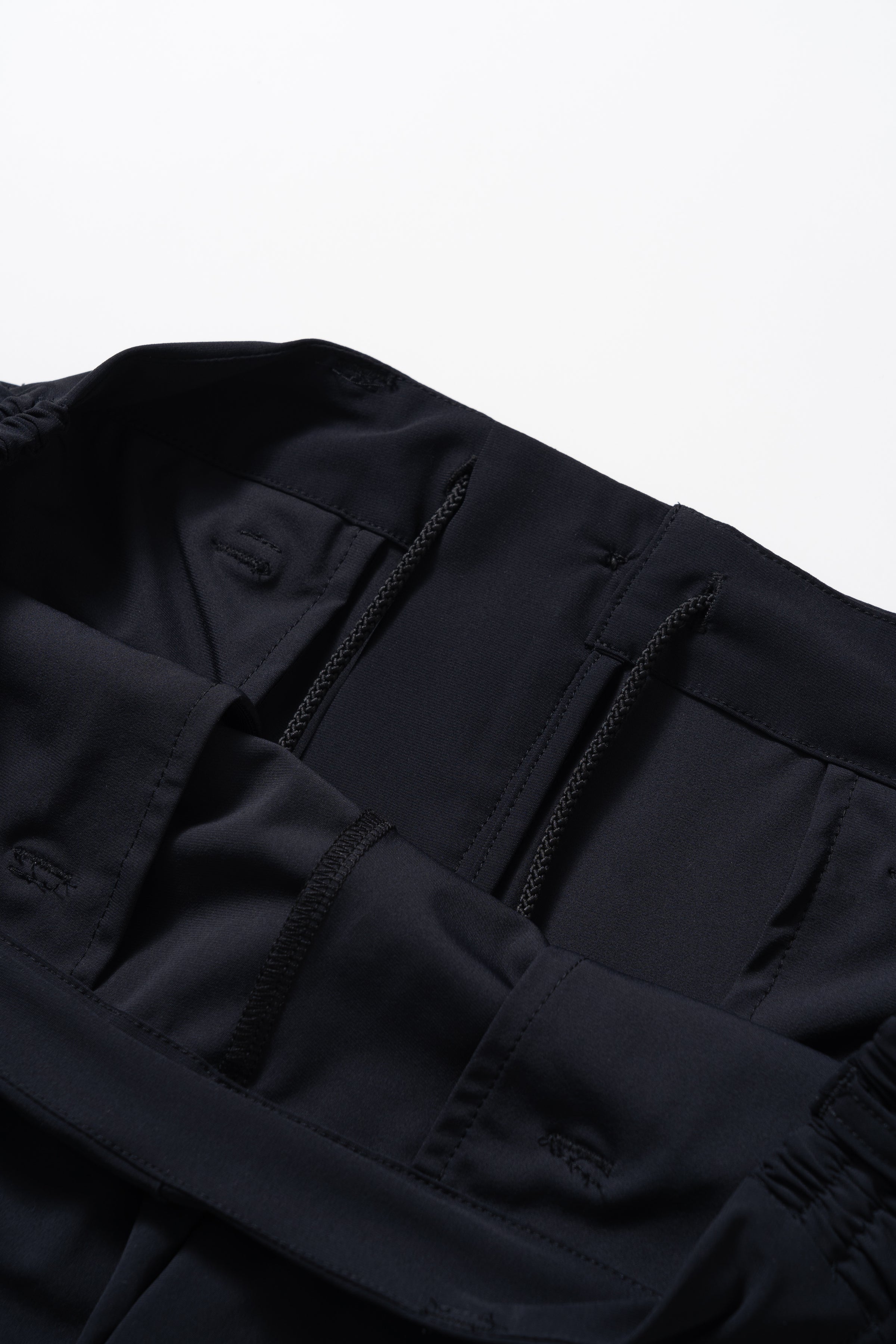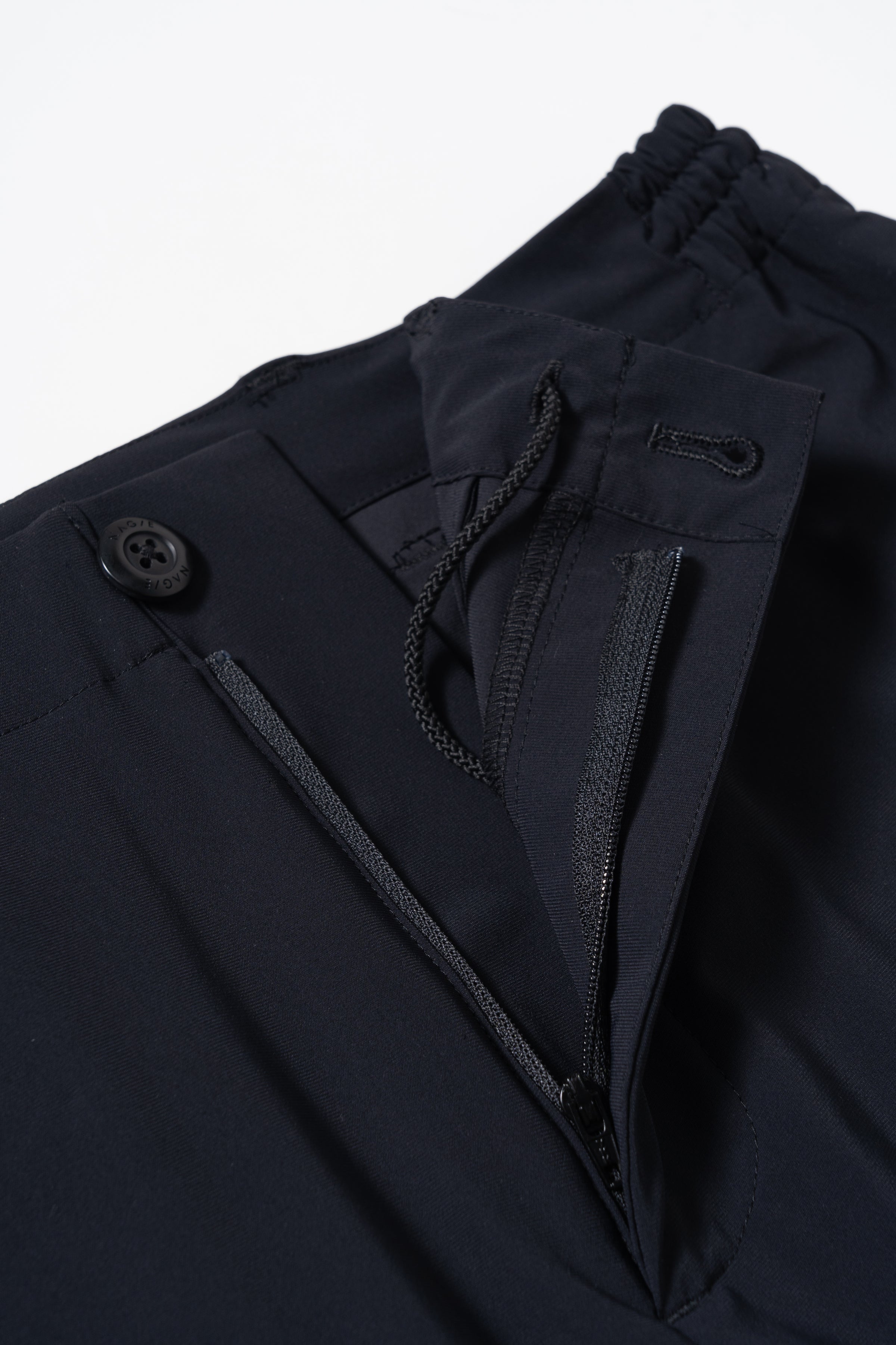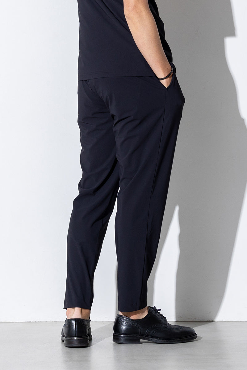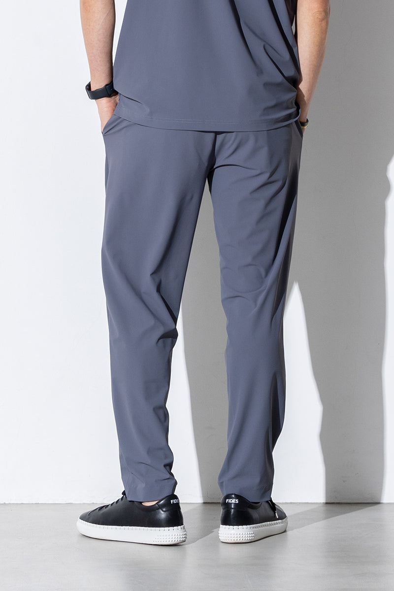 4WAYストレッチで快適な履き心地のストレッチテーパードパンツ。ウエストは紐をつけているため調整が可能。ベルトループも備えており、普段使いだけでなくビジネスシーンにも重宝するアイテム。同素材のジャケットやポロシャツとセットアップでコーディネートするのもおすすめ。リサイクルポリエステルやリサイクルボタンを使用しています。